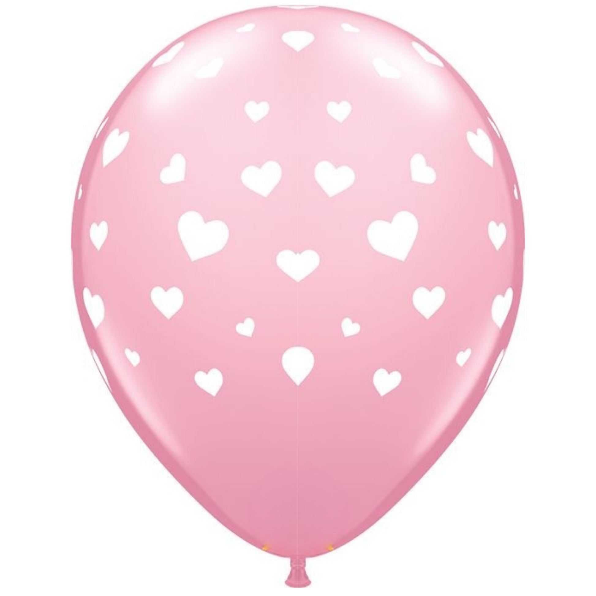 11"/ 28cm PINK HEARTS SINGLE LATEX BALLOON