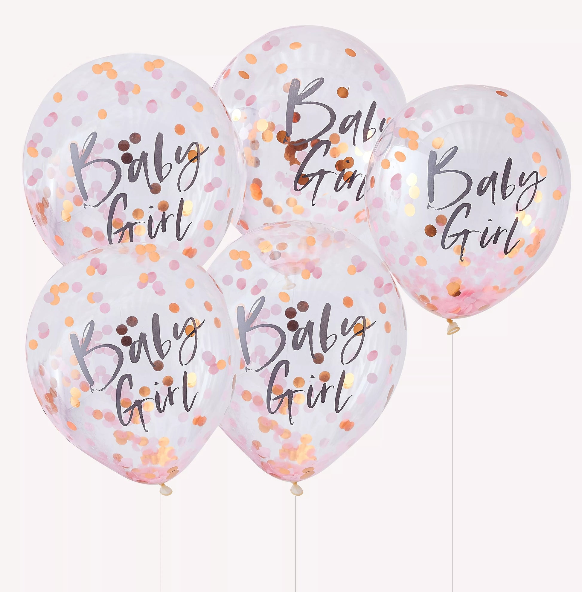 Increase quantity for 12"/ 30cm BABY GIRL CONFETTI 5 PACK LATEX BALLOONS