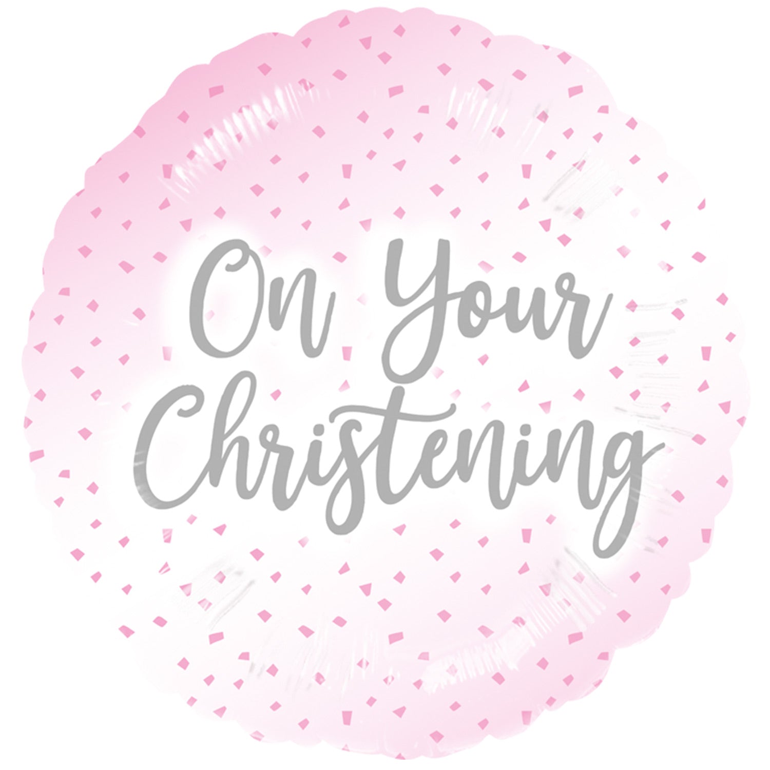 17"/ 43cm PINK ON YOUR CHRISTENING ROUND FOIL BALLOON