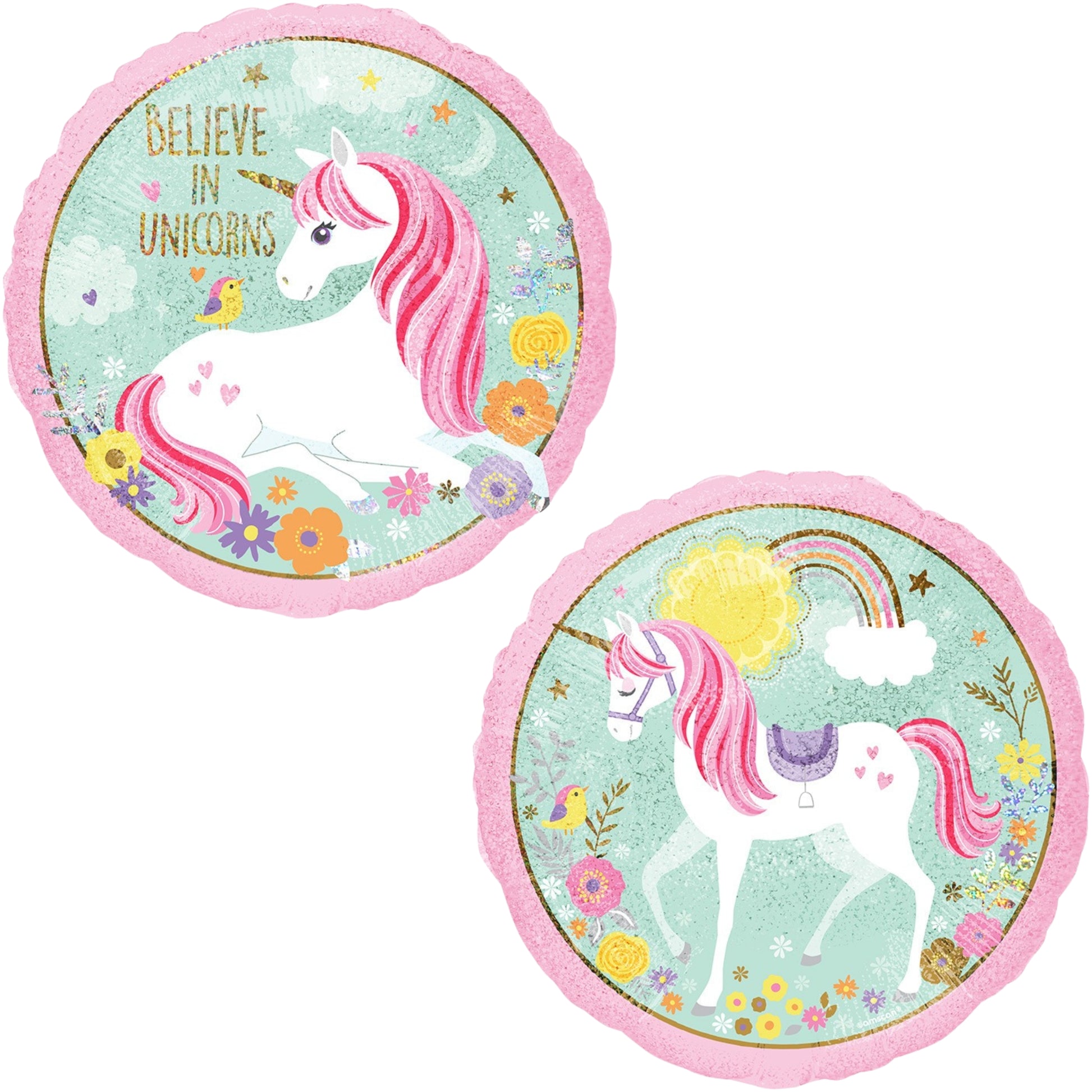 18"/ 46cm BELIEVE IN UNICORNS DOUBLE-SIDED ROUND FOIL BALLOON