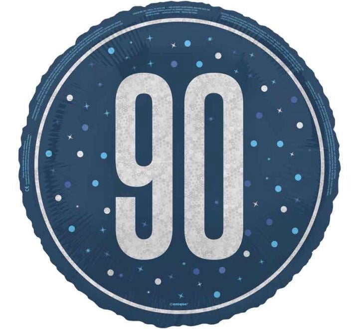 18"/ 46cm BLUE GLITZ "90" ROUND FOIL BALLOON