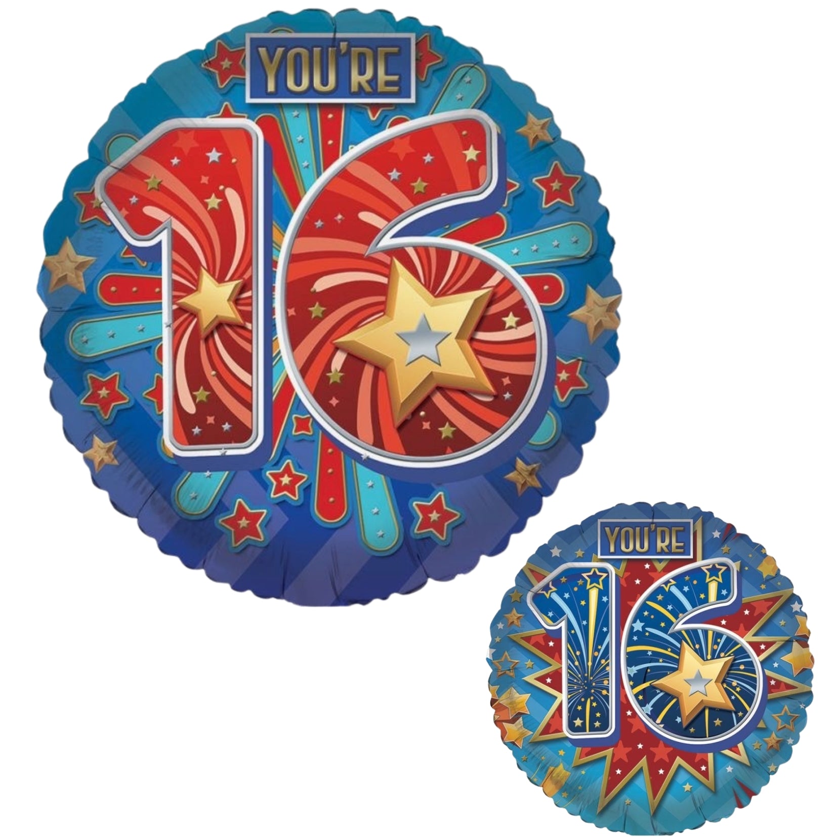 18"/ 46cm BLUE YOU'RE 16 DOUBLE-SIDED ROUND FOIL BALLOON