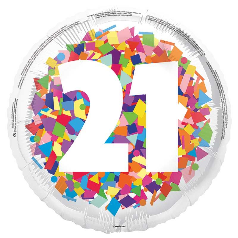 18"/ 46cm BRIGHT CONFETTI 21ST ROUND FOIL BALLOON
