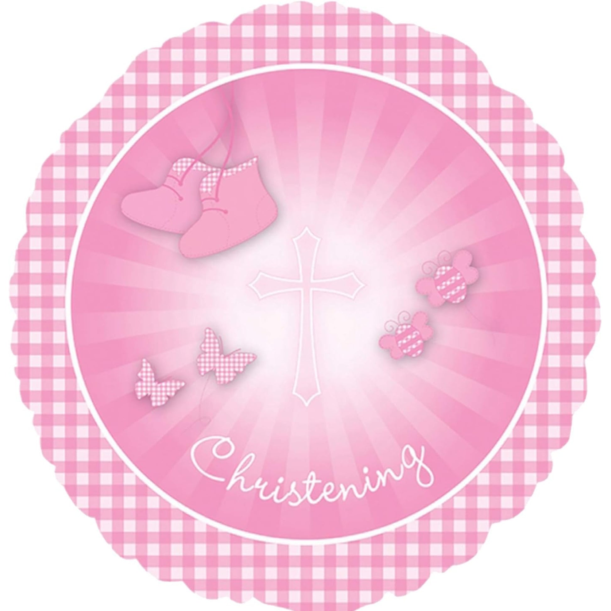 18"/ 46cm CHRISTENING BOOTIES PINK ROUND FOIL BALLOON
