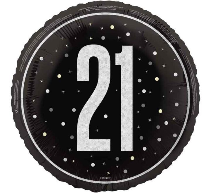 18"/ 46cm GLIITZ BLACK "21" ROUND FOIL BALLOON