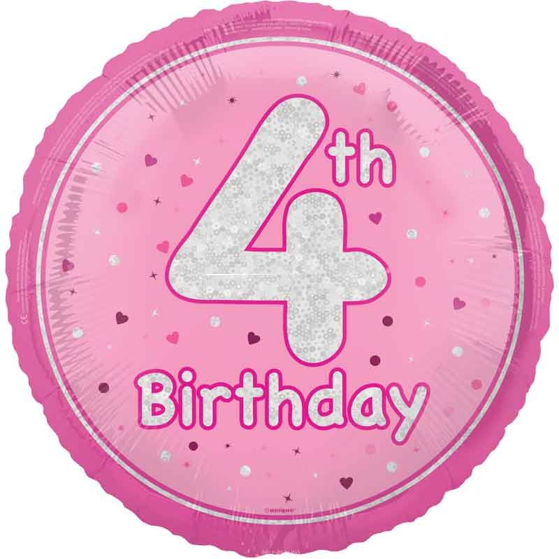 Increase quantity for 18"/ 46cm GLITZ PINK 4TH BIRTHDAY ROUND FOIL BALLOON