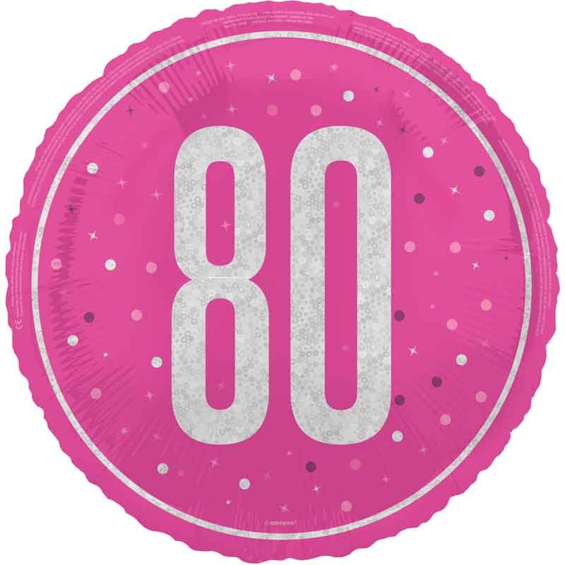 18"/ 46cm GLITZ PINK 80TH BIRTHDAY ROUND FOIL BALLOON