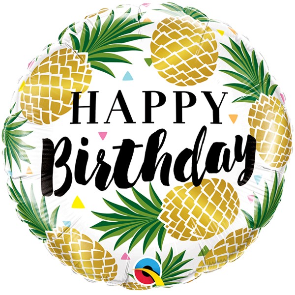 18"/ 46cm GOLDEN PINEAPPLE HAPPY BIRTHDAY ROUND FOIL BALLOON