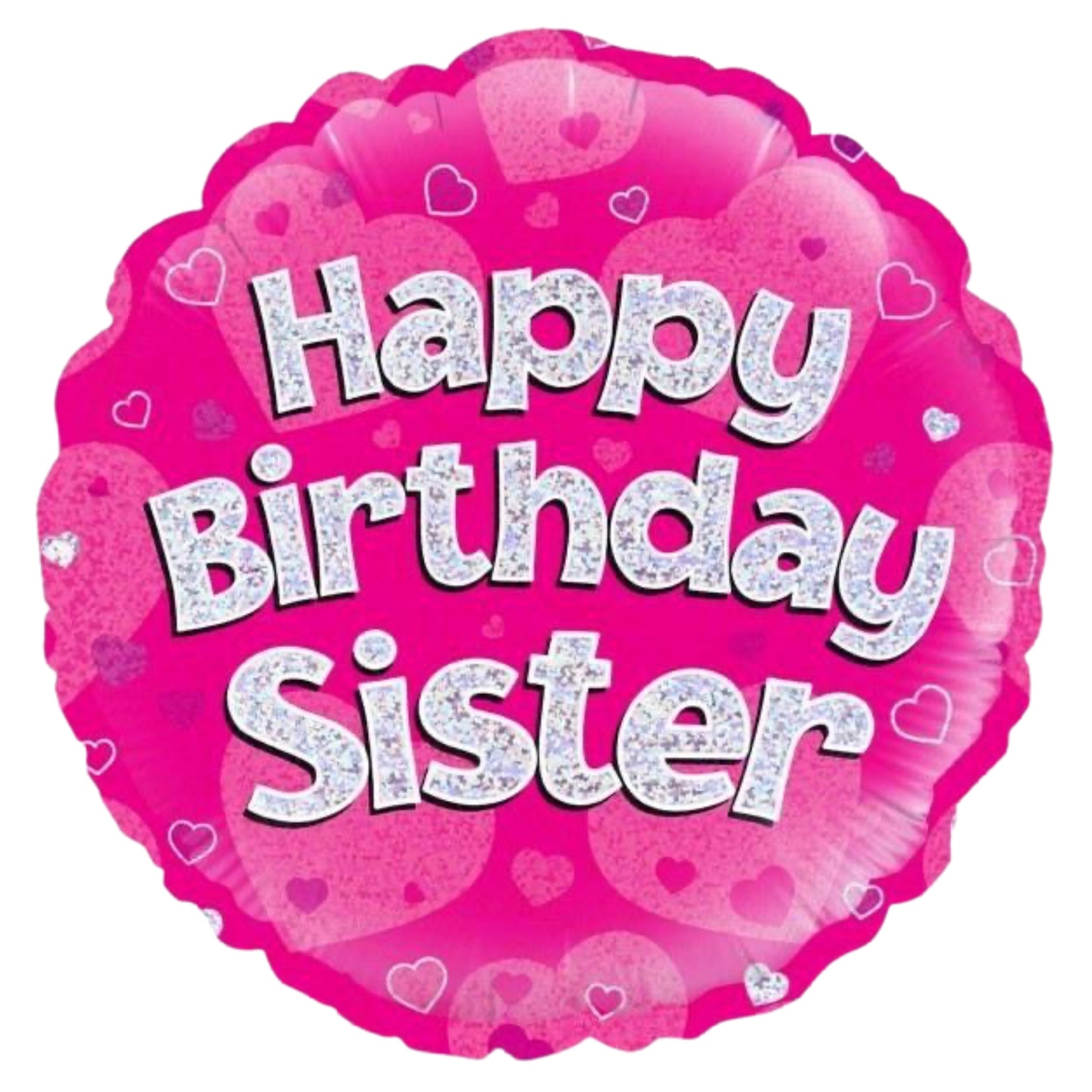 18"/ 46cm HAPPY BIRTHDAY SISTER HOLOGRAPHIC ROUND FOIL BALLOON