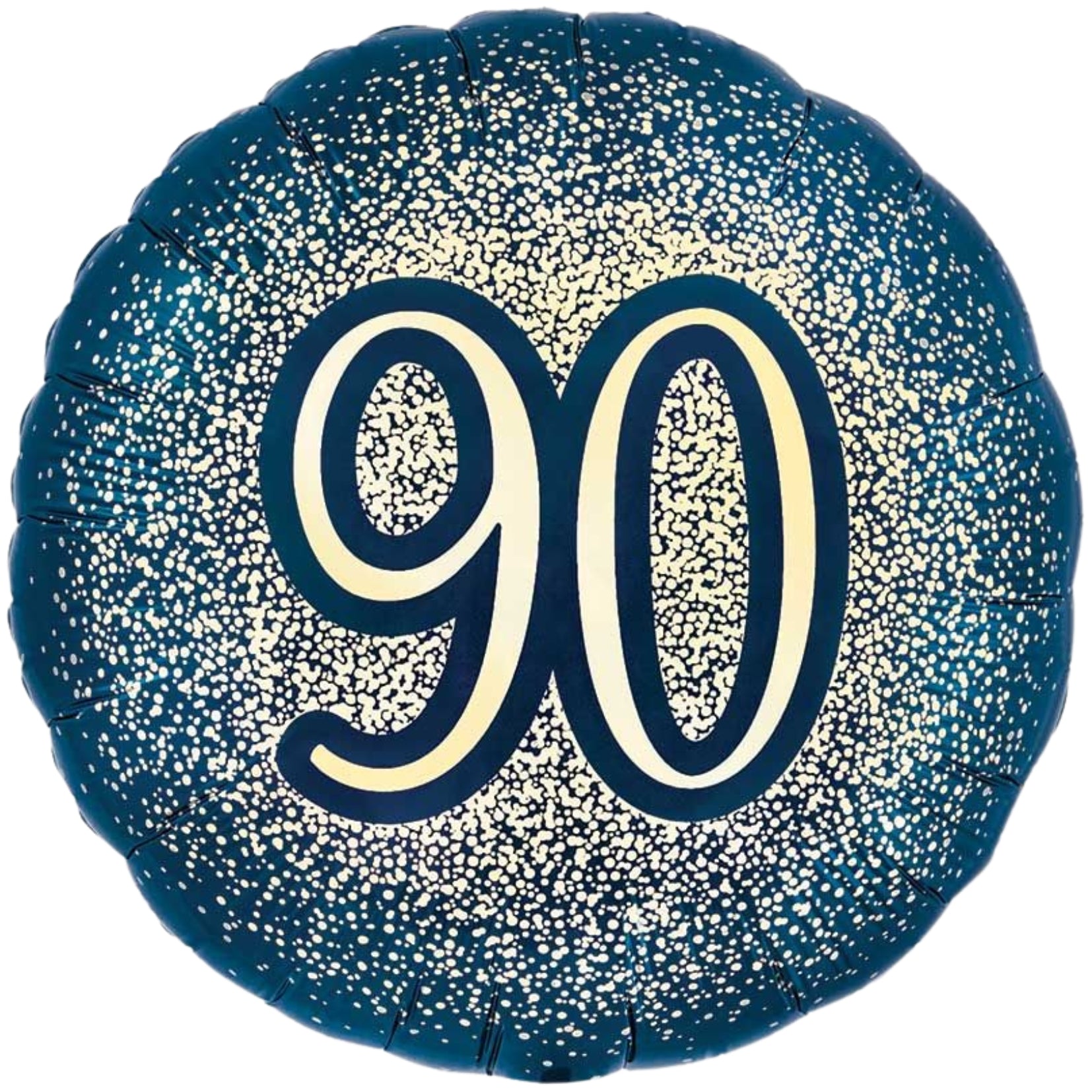 18"/ 46cm NAVY GOLD GLIITER 90TH BIRTHDAY ROUND FOIL BALLOON