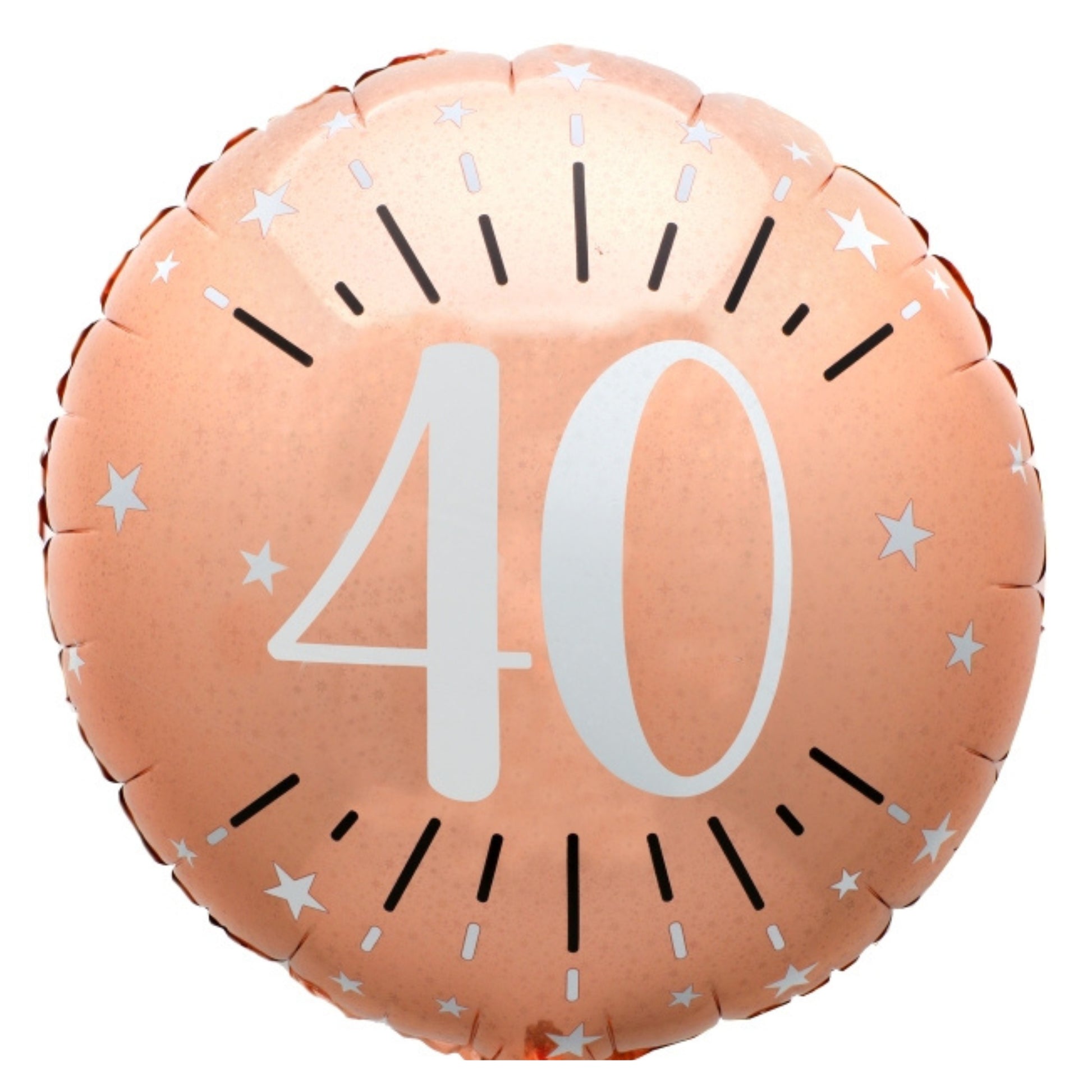 18"/ 46cm PINK GOLD WITH WHITE PRINT 40TH BIRTHDAY ROUND FOIL BALLOON