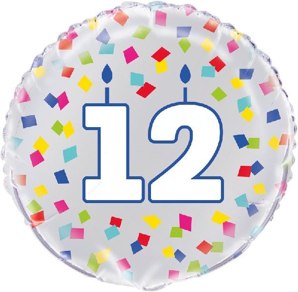 Decrease quantity for 18"/ 46cm RAINBOW CONFETTI 12TH BIRTHDAY ROUND FOIL BALLOON