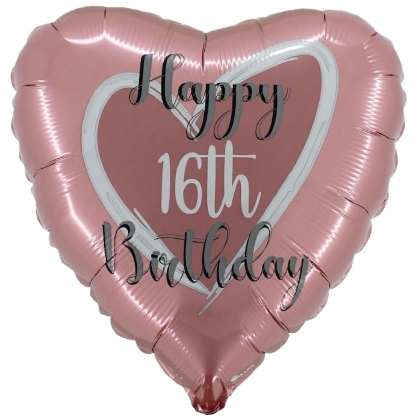 18"/ 46cm ROSE GOLD HAPPY 16TH BIRTHDAY HEART SHAPE FOIL BALLOON