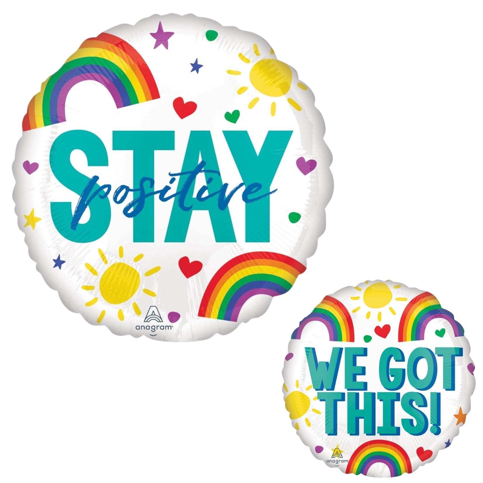 18"/ 46cm STAY POSITIVE WE GOT THIS! DOUBLE SIDED ROUND FOIL BALLOON