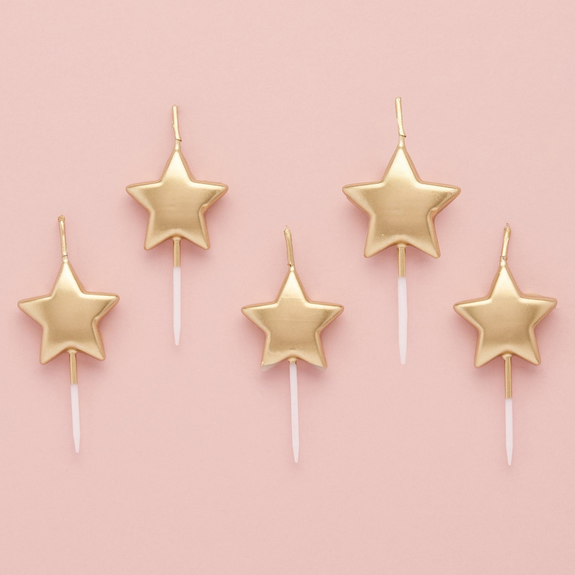 2"/ 5cm GOLD STAR CANDLES (5 PACK)