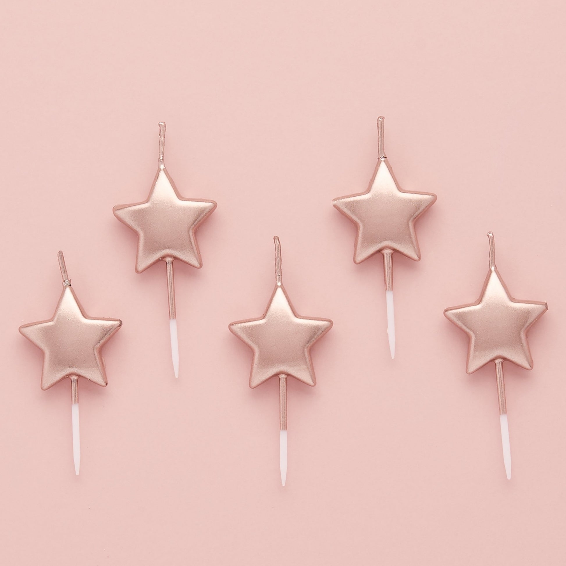 2"/ 5cm ROSE GOLD STAR CANDLES (5 PACK)