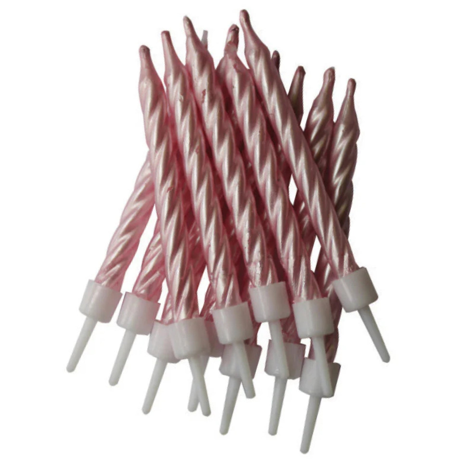 3"/ 7.5cm PEARLESCENT PINK BIRTHDAY CANDLES WITH HOLDERS (12 PACK)
