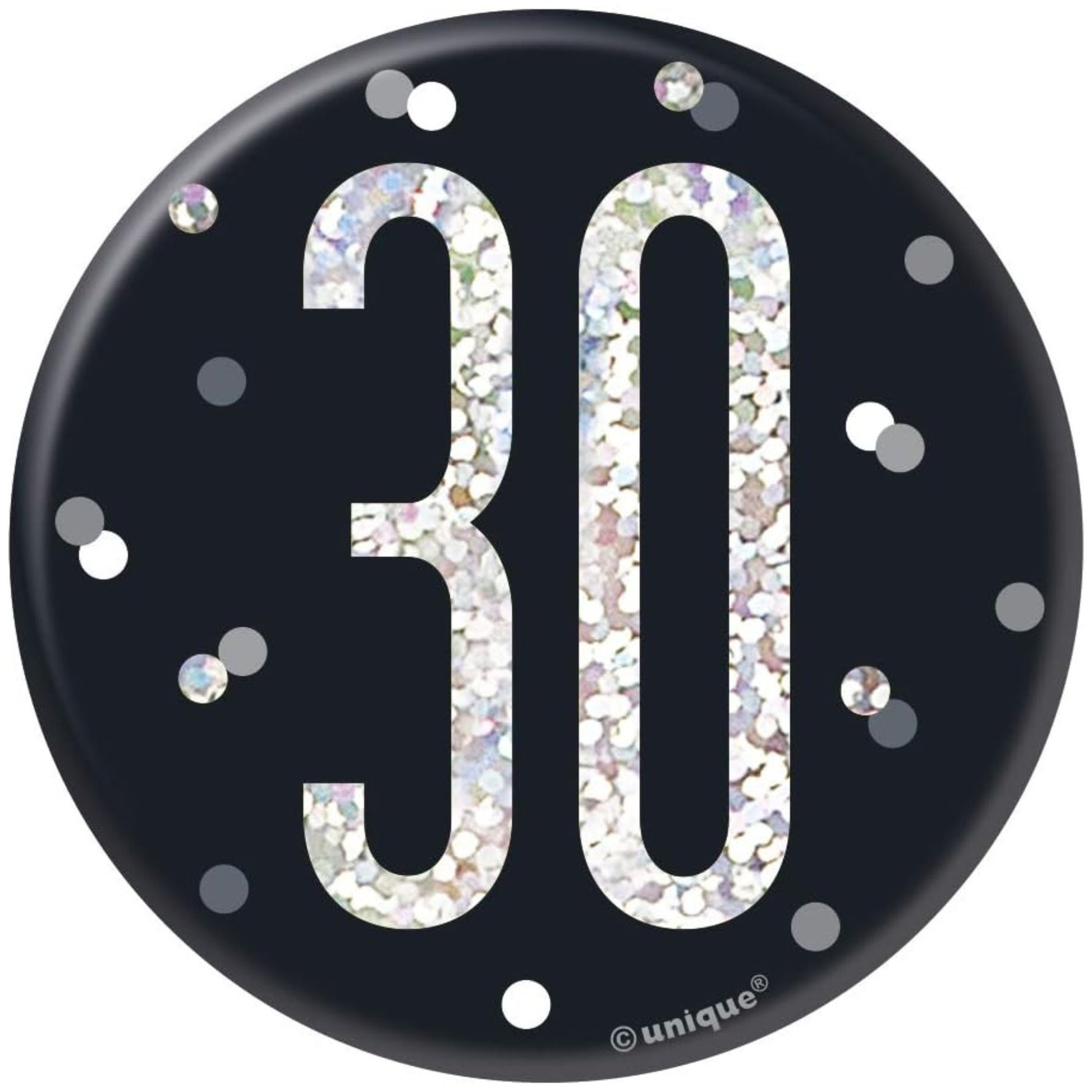 3"/ 8cm GLITZ BLACK 30th BIRTHDAY BADGE