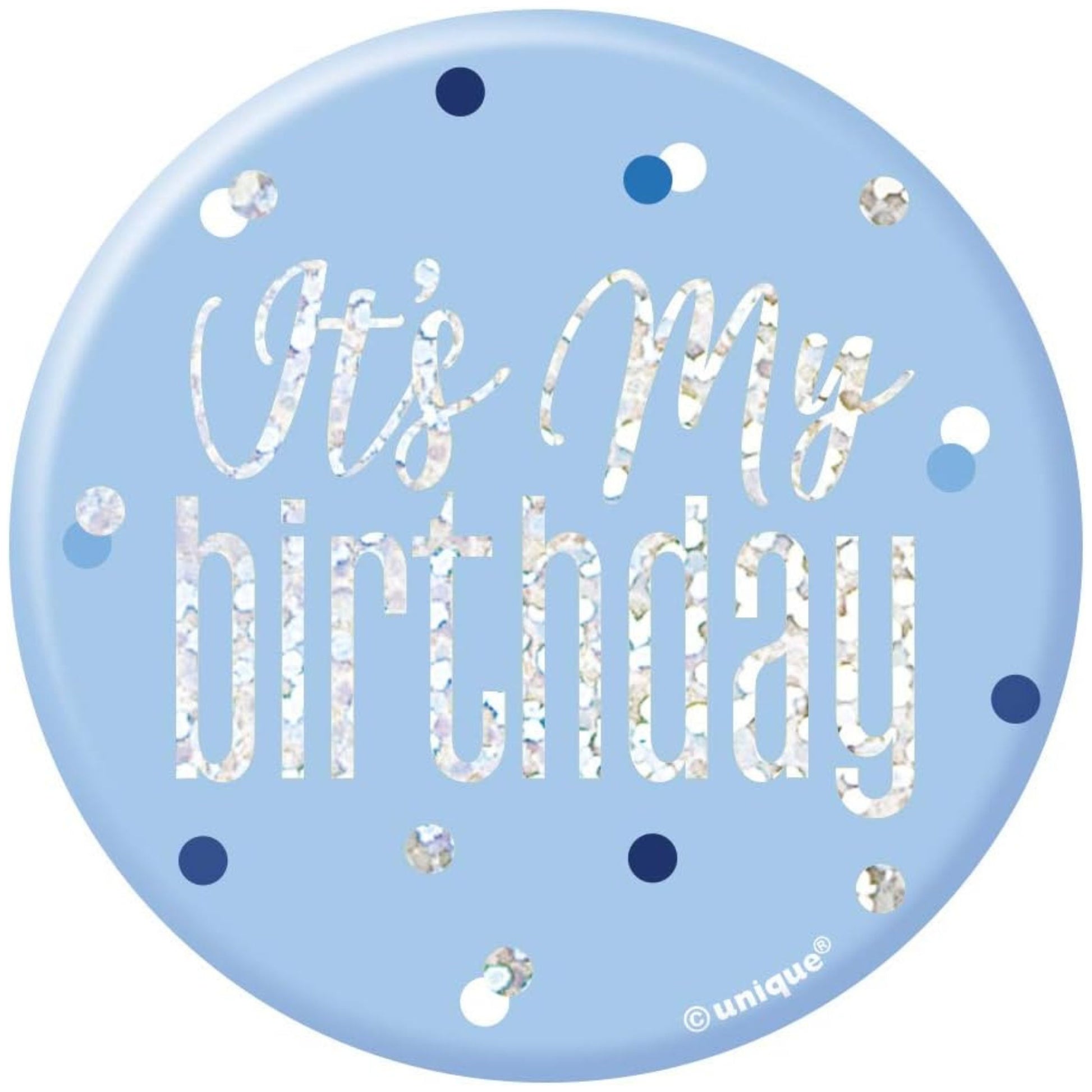 3"/ 8cm GLITZ BLUE HAPPY BIRTHDAY BADGE