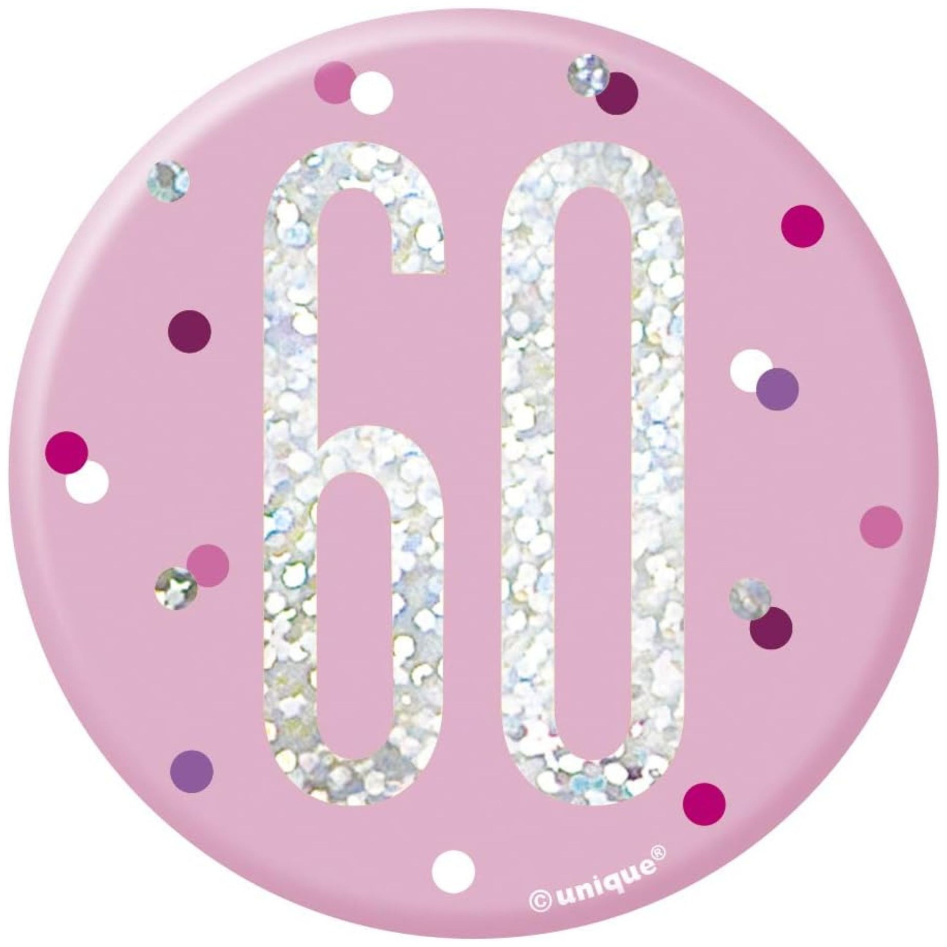 3"/ 8cm GLITZ PINK 60th BIRTHDAY BADGE