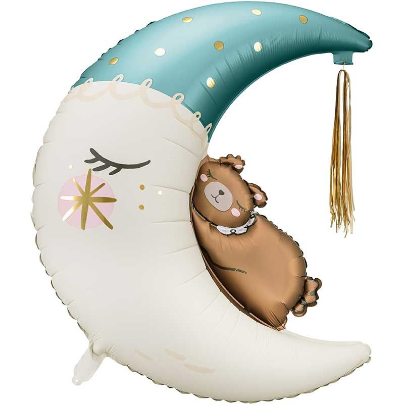 39"/ 98cm TEDDY BEAR ON THE MOON BLUE SUPERSHAPE FOIL BALLOON