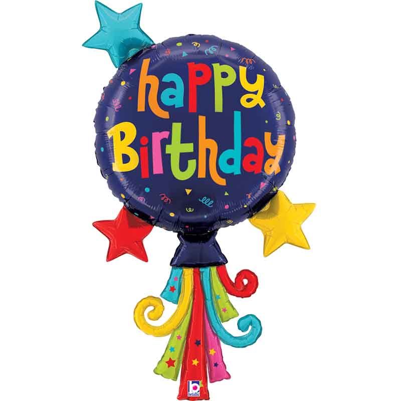 48"/ 122cm BALLOON STREAMER BIRTHDAY SUPERSHAPE FOIL BALLOON