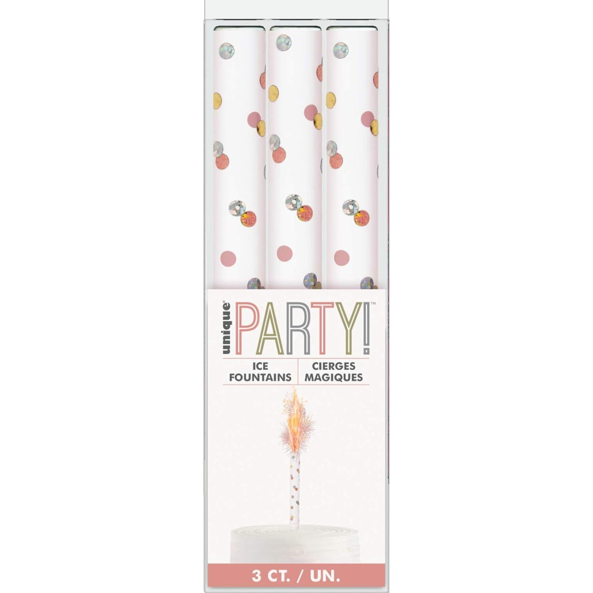 6"/ 15cm ROSE GOLD GLITZ ICE FOUNTAIN SPARKLER CANDLES (3 PACK)