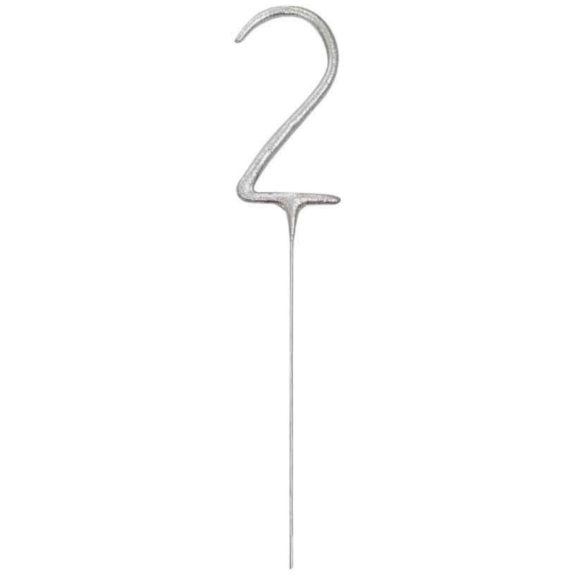7"/ 18cm NUMERAL 2 SILVER GLITZ SPARKLER CANDLE