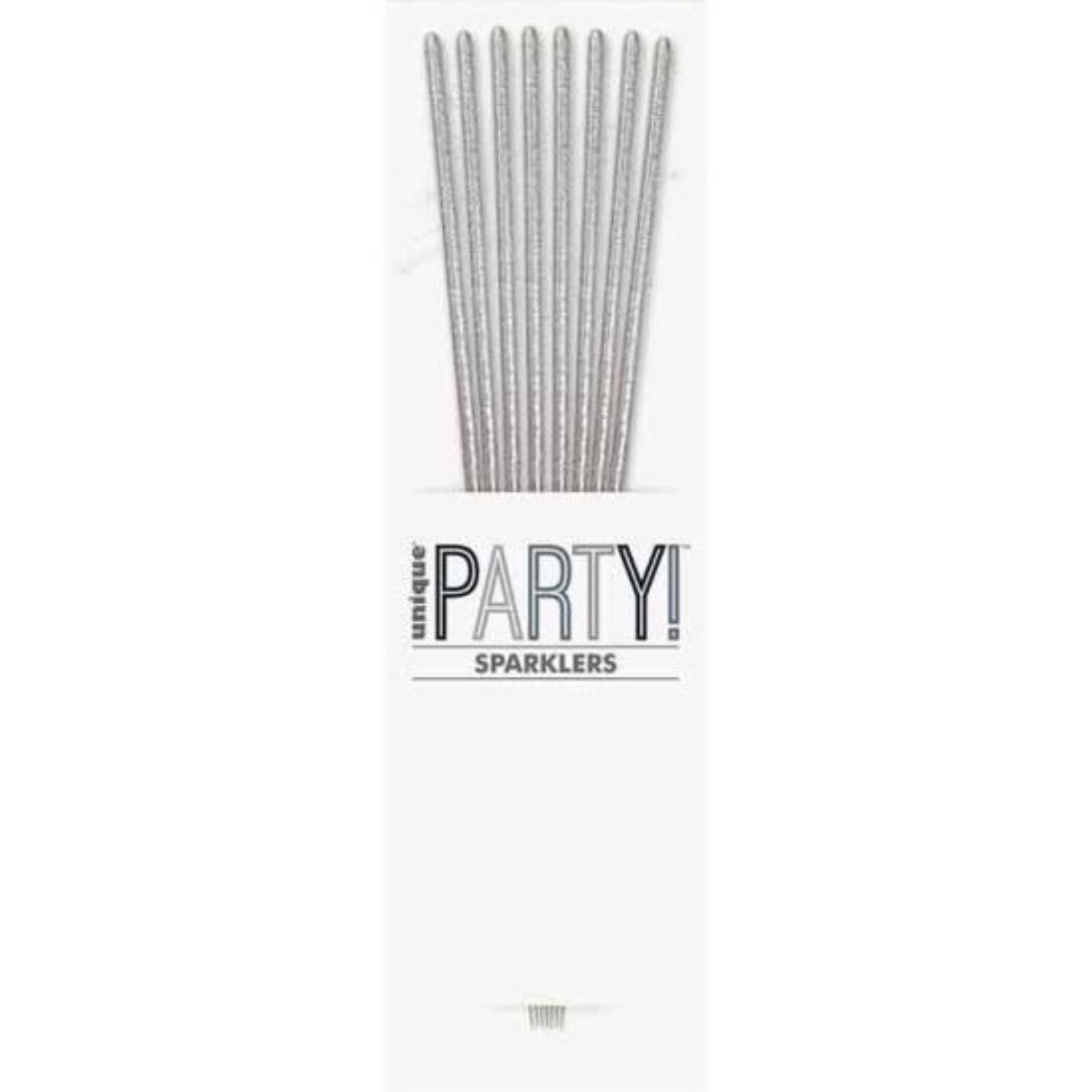7"/ 18cm SILVER GLITZ SPARKLERS CANDLES (8 PACK)