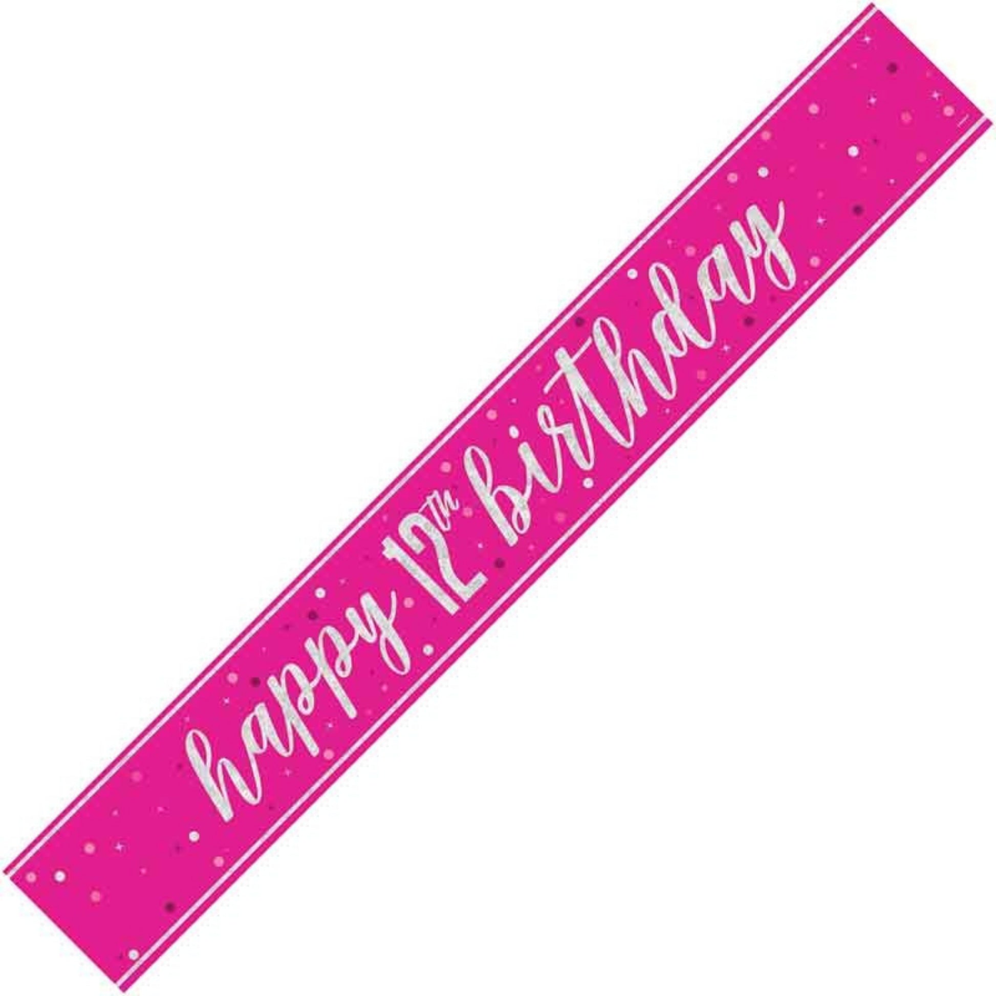 9ft / 2.7m GLITZ PINK 12TH BIRTHDAY BANNER