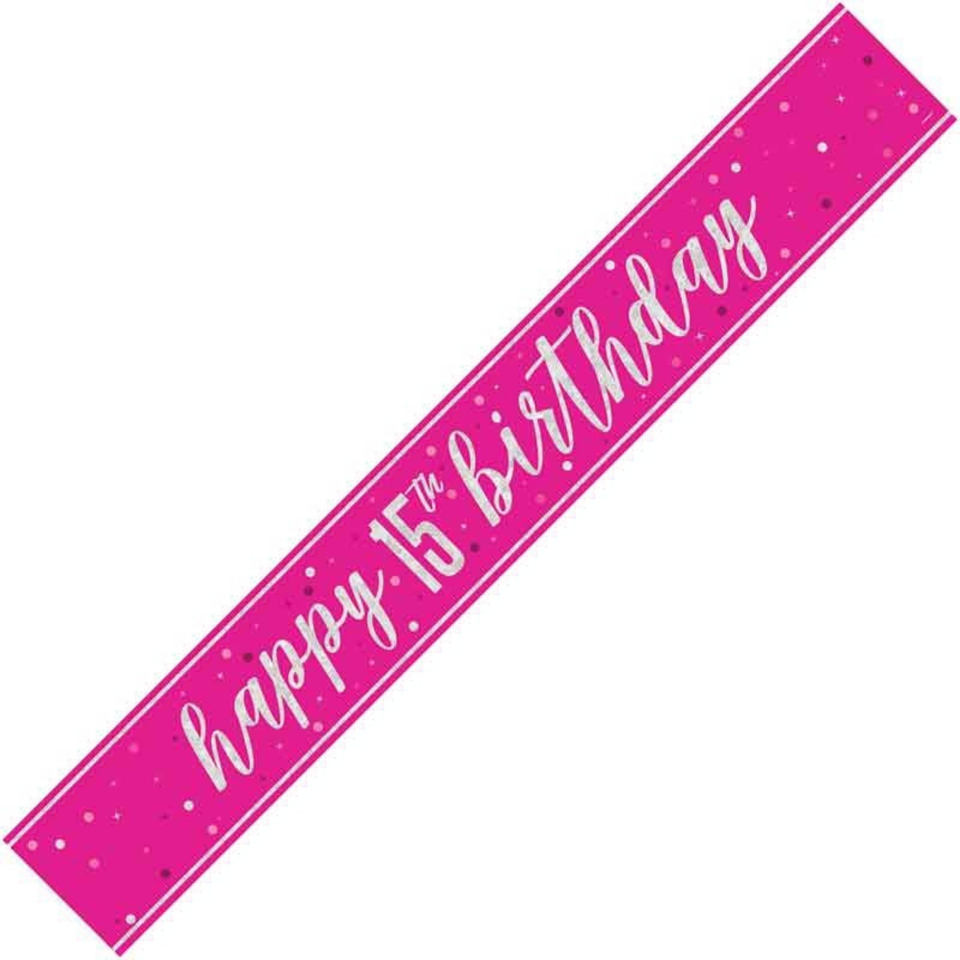 9ft / 2.7m GLITZ PINK 15TH BIRTHDAY BANNER