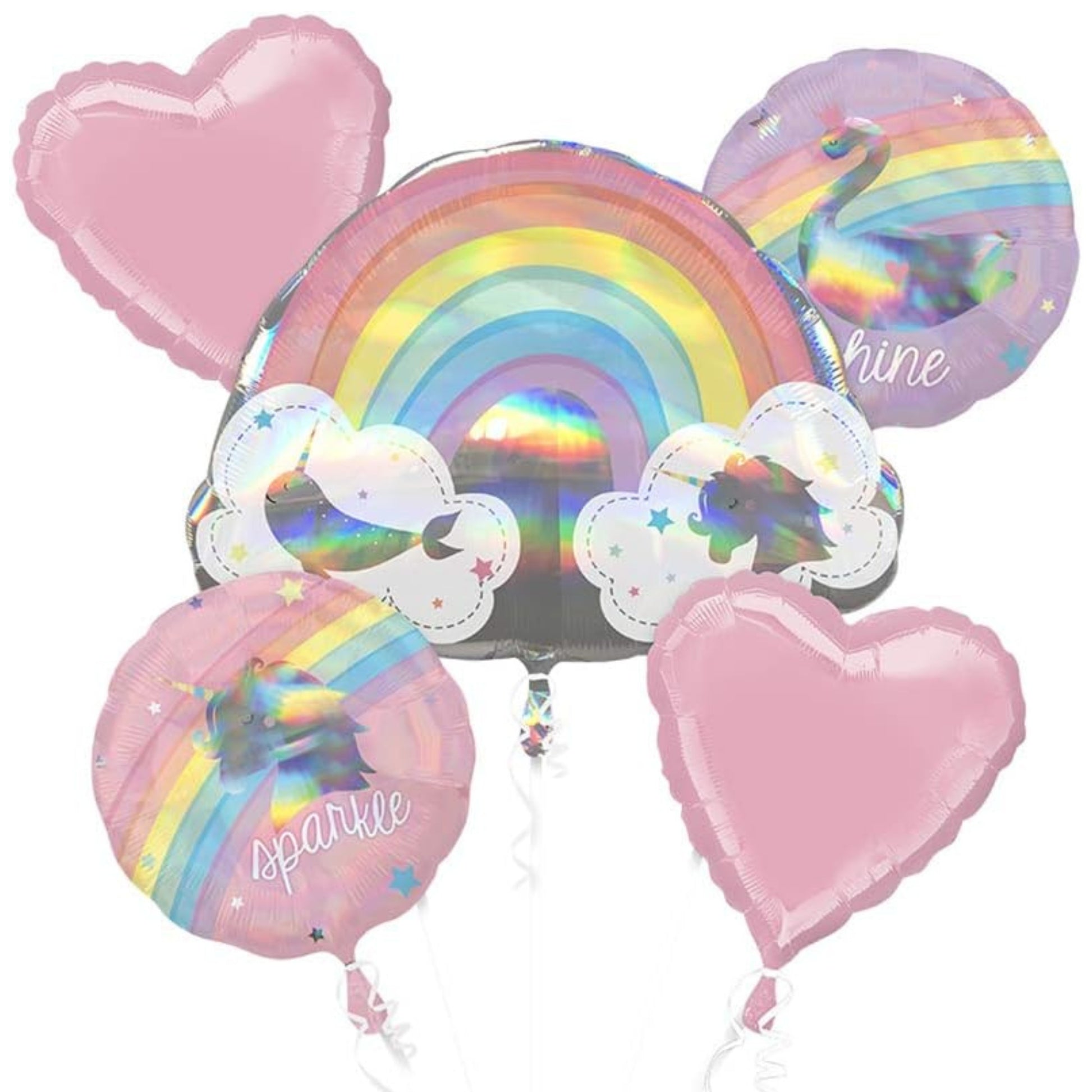 MAGICAL RAINBOW 5 PIECE FOIL BALLON BOUQUET (1x28", 4x18"/ 1x71cm, 4x46cm)