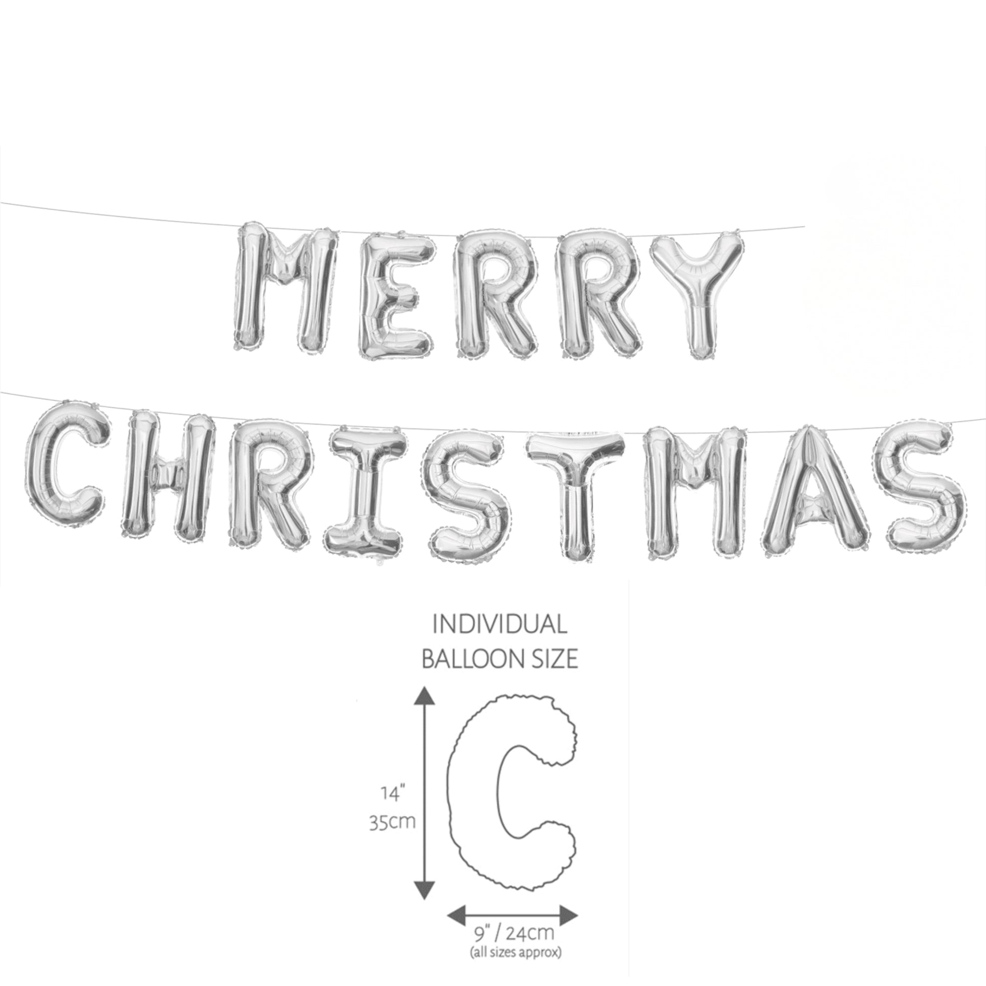 SILVER MERRY CHRISTMAS AIR-FILL FOIL LETTER BALLOON STRING (9" x 14" / 24cm x 35cm)